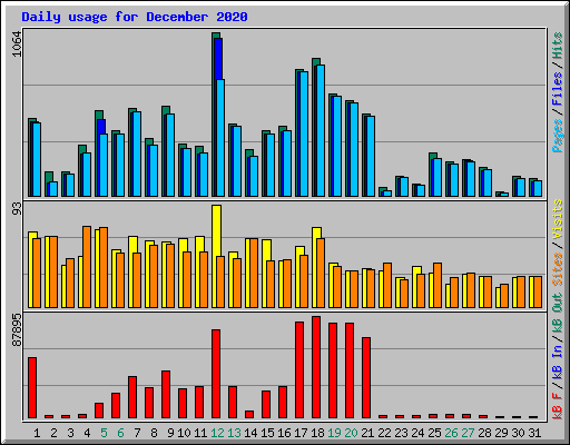 | Day | Hits | Files | Pages | Visits | Sites | kB F | kB In | kB Out | ||||||||